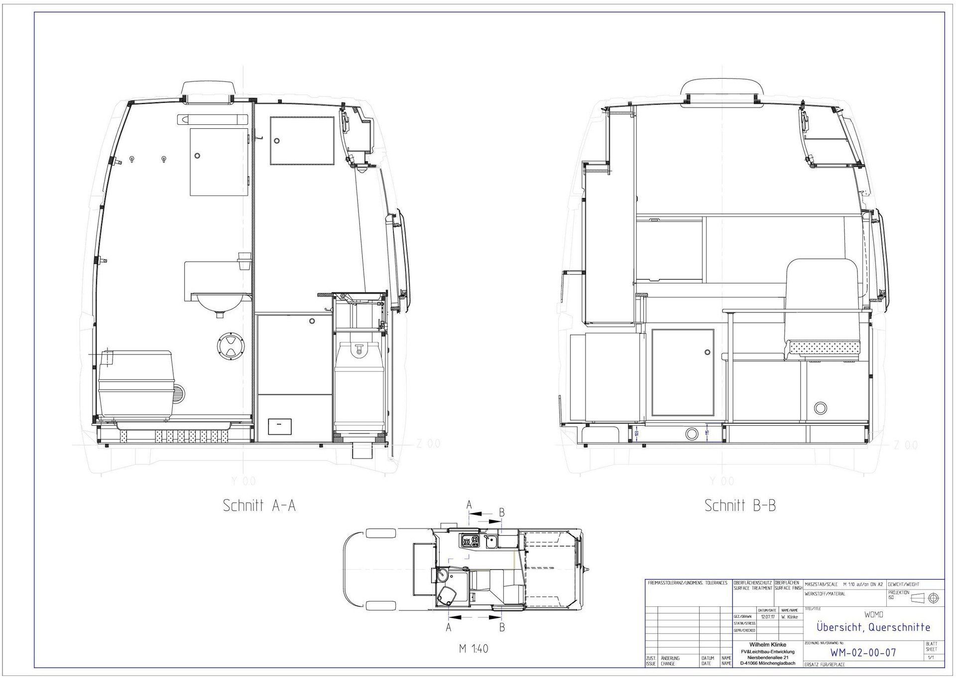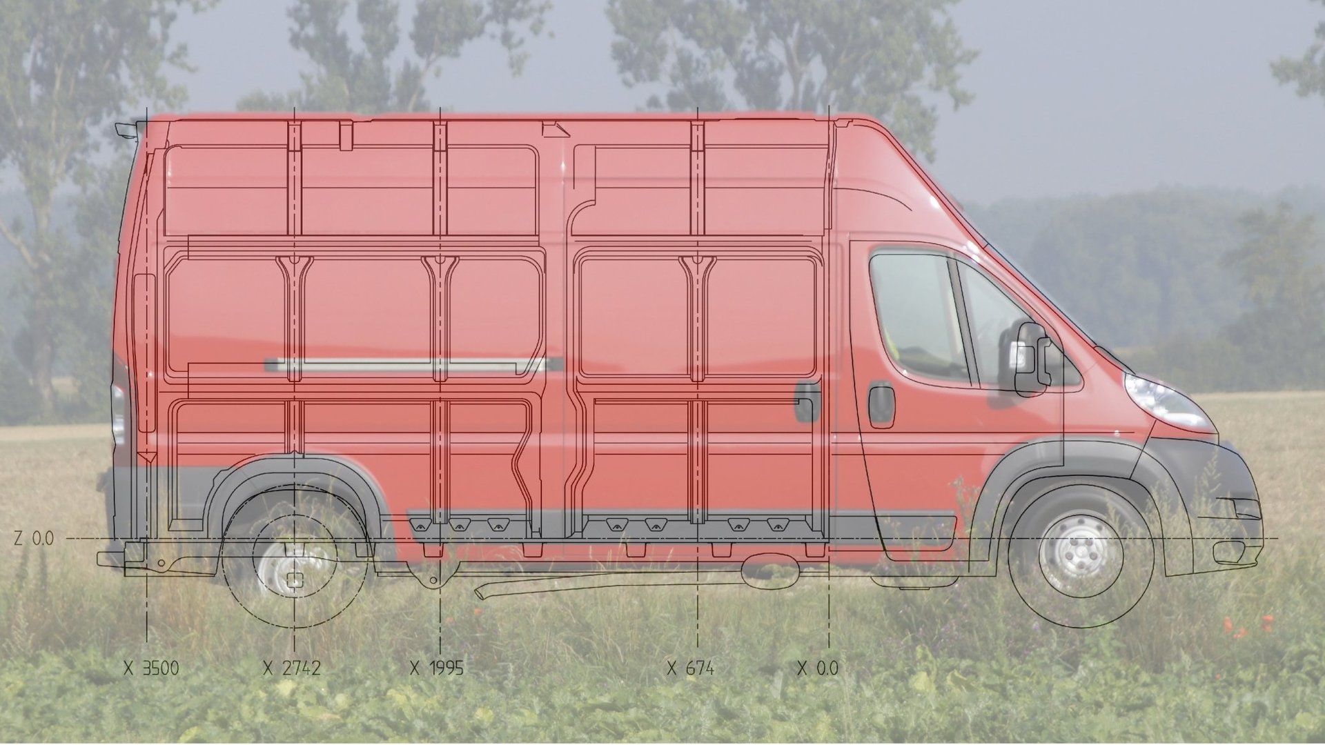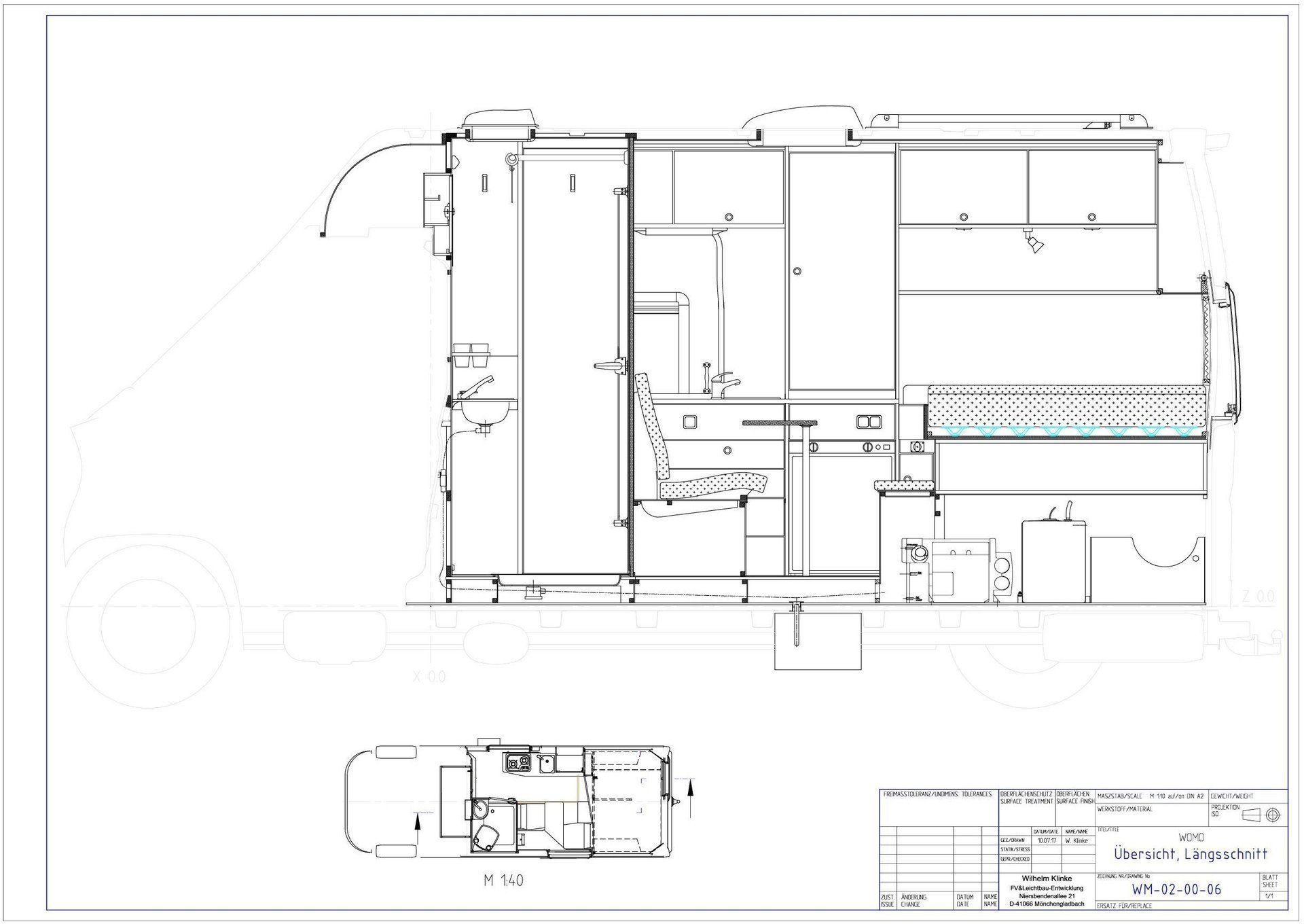 Mit diesen Unterlagen kann der Ausbau eines Jumper/Boxer L3H3 oder Ducato L4/H3 ab Bj. 2006 komplett oder teilweise gefertigt werden, oder sie können als Basis für eigene Ausbauten verwendet werden. Die Einbauzeichnungen enthalten auf einem eigenen Layer die hinterlegte Fahrzeugstruktur und die benachbarten Bauteile in Phantom-Darstellung. Alle Zeichnungen in den Formaten A4 bis A1 sind so beschriftet, dass in einem Ausdruck ab A4 alle Texte lesbar sind.